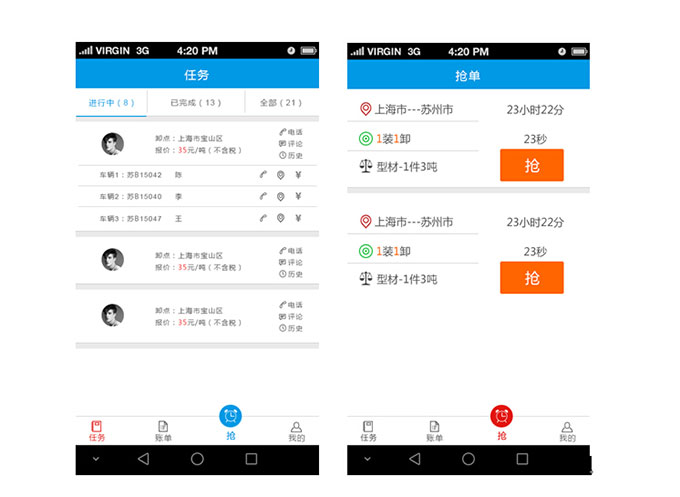 貨主端主要功能是搶空車,發(fā)布貨源,接受車隊(duì),監(jiān)控任務(wù),結(jié)算賬單等功能。